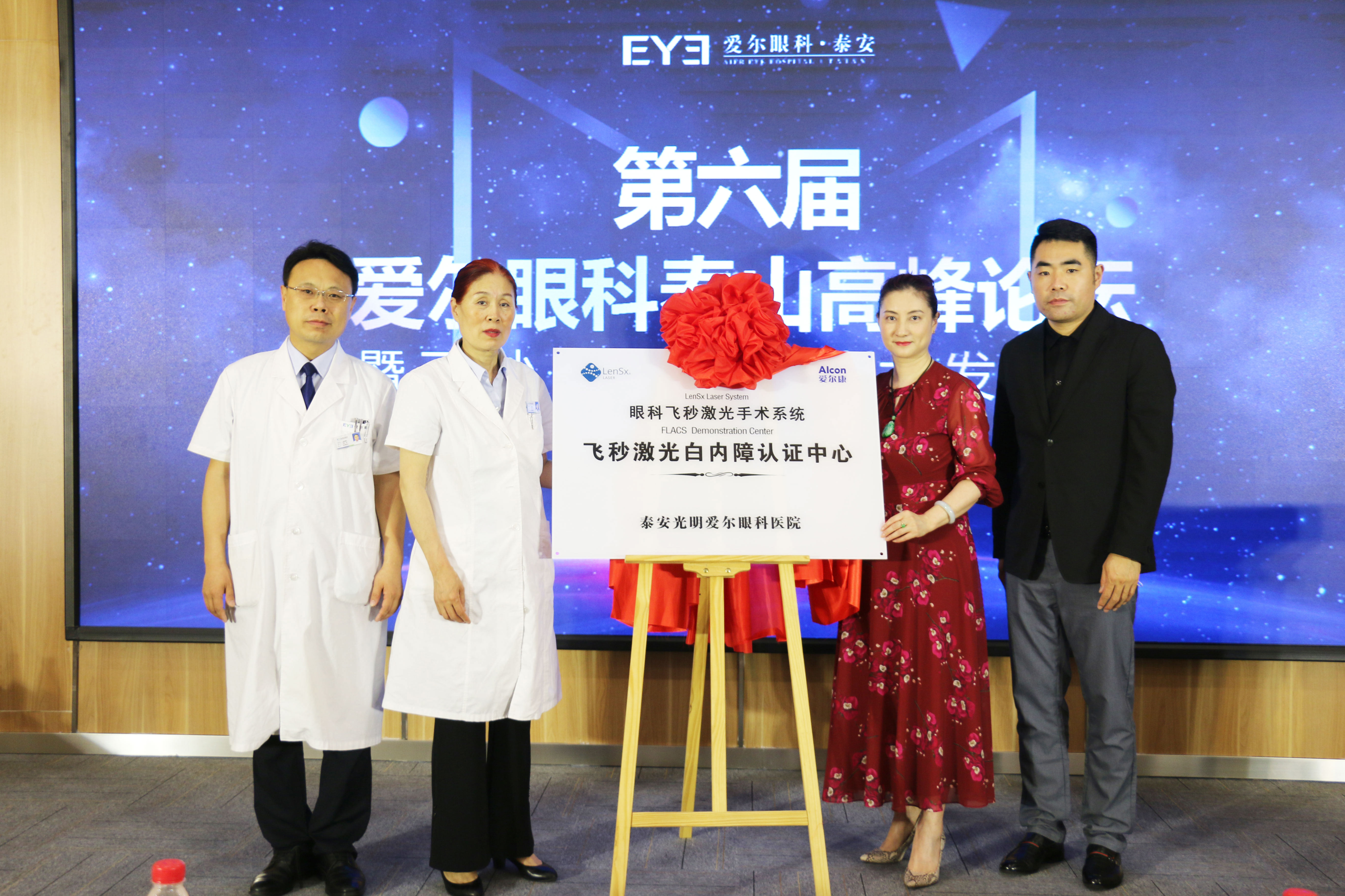 ? ? ? ? 23日下午,眼科專家們齊聚泰安光明愛爾眼科醫(yī)院,在各位業(yè)界大咖的見證下,Alcon ?LENSX ?LASER飛秒白內(nèi)障設(shè)備正式亮相,泰安光明愛爾眼科醫(yī)院范傳峰院長、李愛華副院長從愛爾康公司大區(qū)經(jīng)理謝群女士、地區(qū)經(jīng)理邵明強(qiáng)先生手中接過認(rèn)證牌匾,“飛秒激光白內(nèi)障認(rèn)證中心”正式落地泰安光明愛爾眼科醫(yī)院。